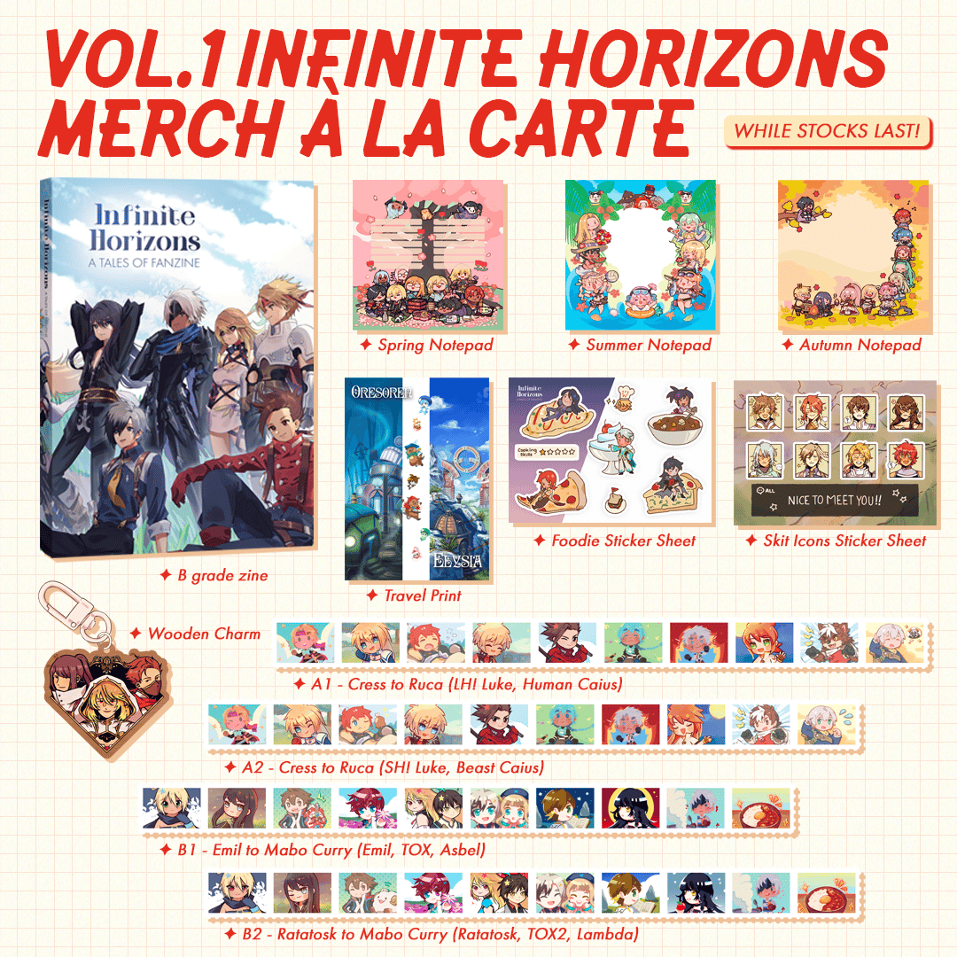 Infinite Horizons makes a return! We have very limited books and merch left, so grab them while they last. Kindly note that if you purchase this with any Vol.2 bundles in the same order, your items will only be sent after production for Vol.2 has ended.